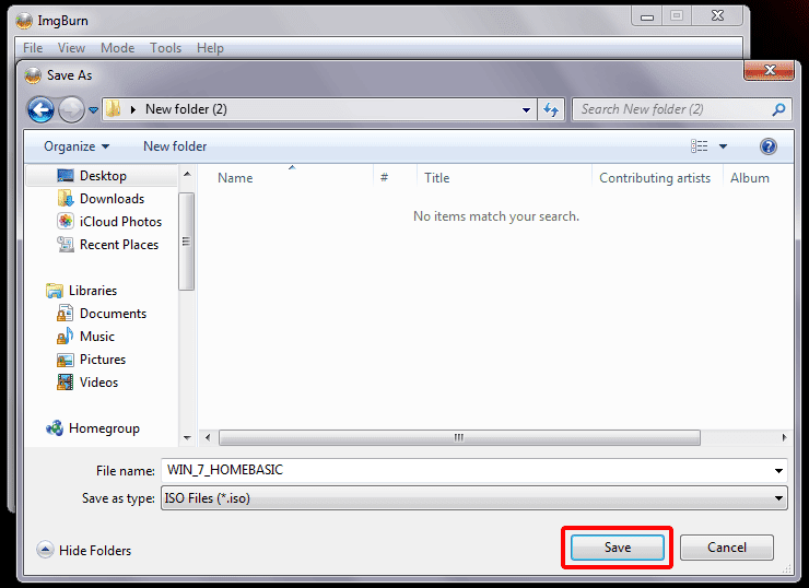 In destination click on “Browse” and select folder where you want to save your ISO Image. Click on “save”.